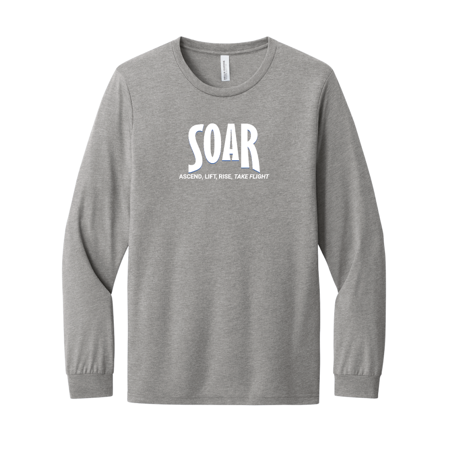 Full Chest SOAR Logo on the favorite BELLA+CANVAS® Unisex Triblend Long Sleeve Tee